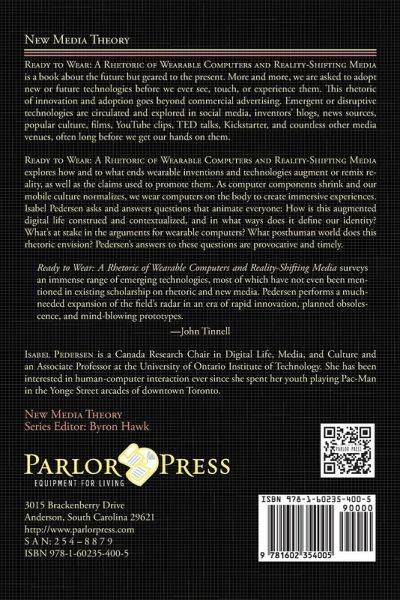 NEW MEDIA THEORY, SERIES EDITOR: BYRON HAWK READY TO WEAR: A RHETORIC OF WEARABLE COMPUTERS AND REALITY-SHIFTING MEDIA is a book about the future but geared to the present. More and more, we are asked to adopt new or future technologies before we ever see, touch, or experience them. This rhetoric of innovation and adoption goes beyond commercial advertising. Emergent or disruptive technologies are circulated and explored in social media, inventors' blogs, news sources, popular culture, films, YouTube clips, TED talks, Kickstarter, and countless other media venues, often long before we get our hands on them. READY TO WEAR: A RHETORIC OF WEARABLE COMPUTERS AND REALITY-SHIFTING MEDIA explores how and to what ends wearable inventions and technologies augment or remix reality, as well as the claims used to promote them. As computer components shrink and our mobile culture normalizes, we wear computers on the body to create immersive experiences. Isabel Pedersen asks and answers questions that animate everyone: How is this augmented digital life construed and contextualized, and in what ways does it define our identity? What's at stake in the arguments for wearable computers? What posthuman world does this rhetoric envision? Her answers to these questions are provocative and timely. "READY TO WEAR: A RHETORIC OF WEARABLE COMPUTERS AND REALITY-SHIFTING MEDIA surveys an immense range of emerging technologies, most of which have not even been mentioned in existing scholarship on rhetoric and new media. Pedersen performs a much-needed expansion of the field's radar in an era of rapid innovation, planned obsolescence, and mind-blowing prototypes." -JOHN TINNELL ISABEL PEDERSEN is a Canada Research Chair in Digital Life, Media, and Culture and an Associate Professor at the University of Ontario Institute of Technology. She has been interested in human-computer interaction ever since she spent her youth playing Pac-Man in the Yonge Street arcades of downtown Toronto.