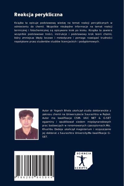 Ksi¿¿ka ta opisuje podstawow¿ wiedz¿ na temat reakcji percyklicznych w odniesieniu do chemii. Wszystkie niezb¿dne informacje na temat reakcji termicznej i fotochemicznej s¿ opisywane krok po kroku. Ksi¿¿ka ta zawiera wszystkie podstawowe tre¿ci, instrukcje i podstawowy krok teorii chemii, który zmniejsza b¿¿dy losowe i metodyczne i pomaga rozwi¿zä trudno¿ci napotykane przez studentów studiów licencjackich i podyplomowych.