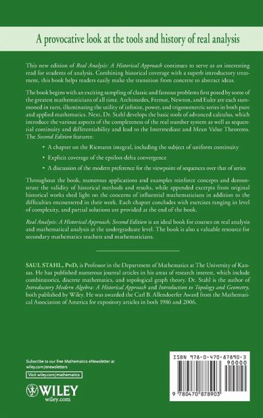 This new edition of Real Analysis: A Historical Approach continues to serve as an interesting read for students of analysis. Combining historical coverage with a superb introductory treatment, this book helps readers easily make the transition from concrete to abstract ideas.