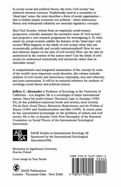 Introduction - Jeffrey C Alexander Civil Society I, II, III: Constructing an Empirical Concept from Normative Controversies and Historical Transformations PART ONE: UNCIVIL HIERARCHIES Banfield¿s Amoral Familism Revisited - Elisa P Reis Implications of High Inequality Structures for Civil Society Between Economic Dissolution and the Return of the Social - Michael Pusey The Contest for Civil Society in Australia Civil Society, Patronage, and Democracy - Luis Roniger Civil Society and Uncivil Organizations - G[um]oran Ahrne PART TWO: BIFURCATING DISCOURSES Citizen and Enemy as Symbolic Classification - Jeffrey C Alexander On the Polarizing Discourse of Civil Society Barbarism and Civility in the Discourses of Fascism, Communism and Democracy - Philip Smith Variations on a Set of Themes The Racial Discourse of Civil Society - Ronald N Jacobs The Rodney King Affair and the City of Los Angeles PART THREE: ARBITRARY FOUNDINGS Neither Faith nor Commerce - David Zaret Printing and the Unintended Origins of English Public Opinion Mistrusting Civility - Piotr Sztompka Predicament of Post-Communist Society The Public Sphere and a European Civil Society - V[ac]ictor P[ac]erez-D[ac]iaz