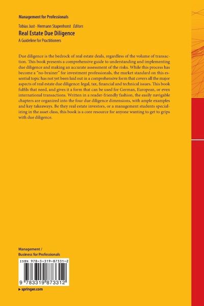 Due diligence is the bedrock of real estate deals, regardless of the volume of transaction. This book presents a comprehensive guide to understanding and implementing due diligence and making an accurate assessment of the risks. While this process has become a "no-brainer" for investment professionals, the market standard on this essential topic has not yet been laid out in a comprehensive form that covers all the major aspects of real estate due diligence: legal, tax, financial and technical issues. This book fulfils that need, and gives it a form that can be used for German, European, or even international transactions. Written in a reader-friendly fashion, the easily navigable chapters are organized into the four due diligence dimensions, with ample examples and key takeaways. Be they real estate investors, or a management students specializing in the asset class, this book is a core resource for anyone wanting to get to grips with due diligence.