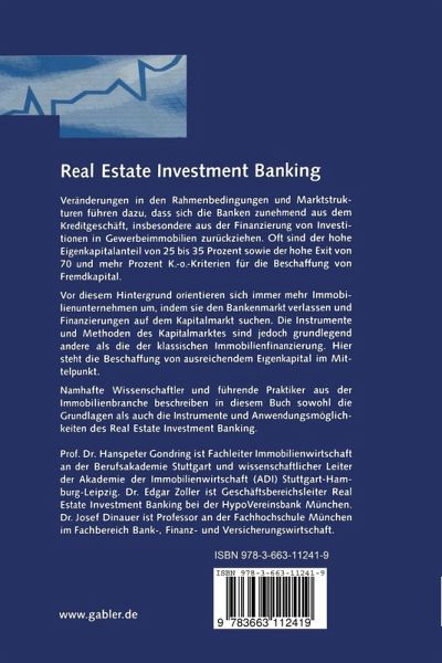 Namhafte Wissenschaftler und führende Praktiker aus der Immobilienbranche beschreiben in diesem Buch sowohl die Grundlagen als auch die Instrumente und Anwendungsmöglichkeiten des Real Estate Investment Banking.