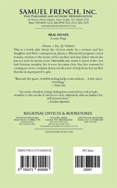 Drama Characters: 2 male, 2 female Exterior Set This is a lovely play about the choices made by a woman and her daughter and their consequences. Jenny, a 38 year old pregnant career woman, returns to the home of her mother and step father whom she has not seen in twenty years. Ostensibly, she wants to know if she ever had German measles, but it soon becomes clear that her reasons for coming are more complex. She needs help from her mother of a sort which she is unprepared to give. "Beneath the spare, truthful writing lurks a vast subtext. . . . A fine piece of writing." Time Out. "Accurate, detailed, loving writing has created four real people, sensitive to the needs of others yet each, ultimately, with an instinct for self preservation." London Spectator.