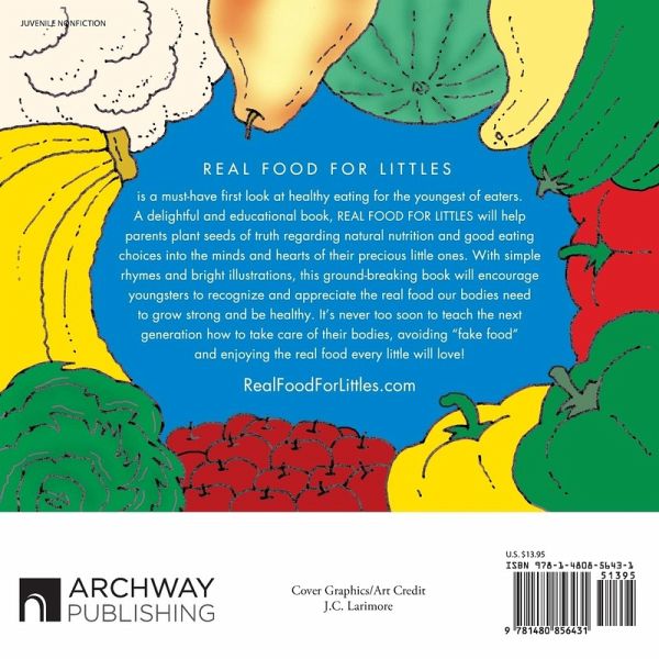 Real Food for Littles is a must-have first look at healthy eating for the youngest of eaters. With delightful rhymes and bright illustrations, this educational book will help parents plant seeds of truth regarding natural nutrition and good eating choices into the minds of their little ones. Its never too soon to teach the next generation how to take care of their bodies, avoiding fake food and enjoying the real food every little will love!