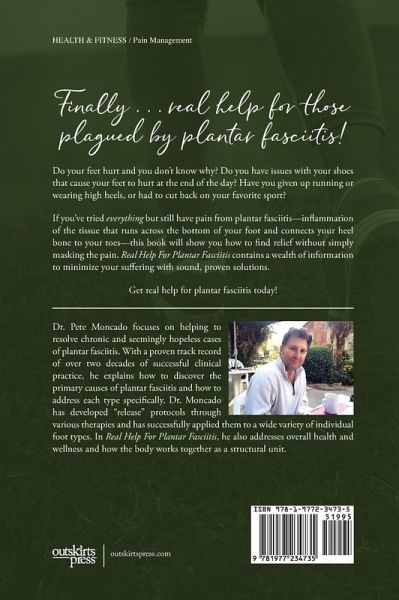 Do your feet hurt? Not just because you've had a long day or even because you've enjoyed a challenging hike. No, in his book Real Help For Plantar Fasciitis, Dr. Pete Moncado, DC, is talking to those of you who have deep, lasting foot pain-the kind of chronic pain often linked to plantar fasciitis. In Real Help For Plantar Fasciitis, Moncado, a chiropractor for almost 25 years, defines plantar fasciitis, shares its causes, and outlines treatment options. By reading this book, you can take a step toward being pain-free-and with this knowledge, along with proper guidance, time, and effort, all your future steps may be carefree.