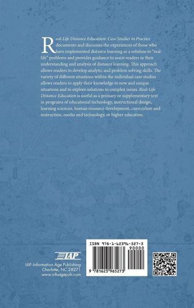 A volume in Perspectives in Instructional Technology and Distance Education Series Editors: Charles Schlosser and Michael Simonson Nova Southeastern University Real-Life Distance Education: Case Studies in Practice documents and discusses the experiences of those who have implemented distance learning as a solution to "real-life" problems and provides guidance to assist readers in their understanding and analysis of distance learning. This approach allows readers to develop analytic and problem solving skills. The variety of different situations within the individual case studies allows readers to apply their knowledge to new and unique situations and to explore solutions to complex issues. The book is useful as a primary or supplementary text in programs of educational technology, instructional design, learning sciences, human resource development, curriculum & instruction, media & technology or higher education.