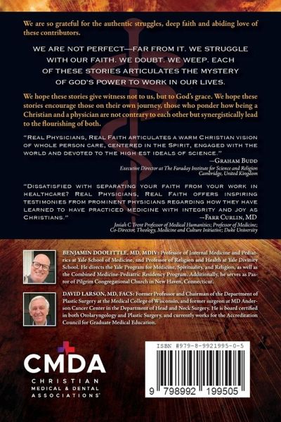 In the fall of 2024, Ben spent a sabbatical at The Faraday Institute for Science & Religion and St Edmund's College, University of Cambridge. The Faraday Institute is a welcoming community of keen-minded scholars and good-hearted friends. The place is a beehive of activity. They have programs for undergraduate and graduate students, churches, and schools. Their team lectures everywhere from Japan to the United Arab Emirates. They greeted Ben into their midst, hooked him into all fun Cambridge spots, and challenged him with the most provocative ideas. Several of the Faraday scholars mentioned a deeply influential book, Real Scientists, Real Faith, first published in 1991, which is a collection of essays by Christian Oxbridge scientists who reconcile their faith and their science. They are astronomers, biochemists, and physicists of the highest rank. At a time when the "New Atheists" are so popular, and the "Nones" are on the rise, this thoughtful collection gives a refreshing perspective: it is possible to be both a scientist and a Christian. This collection is borne from that tradition; and yet, perhaps physicians engage in faith a bit differently than the scientist. A scientist beholds the glory of God in the cosmos, in the chemical reaction, and in the microscope. A physician beholds the glory of God in the patient. God's presence is often experienced in the weeping, the suffering, the grind of the work, and even, hopefully, the healing. We rejoice when the patient improves; but we also struggle with our burnout and our failures. Sure, we too are scientists. But we are also human. Because medicine is intensely human, we, as Christian physicians, lean into our faith. What else are we to do? As Peter said to Jesus, "Lord, to whom shall we go? You have the words of eternal life. We have come to believe and to know that you are the Holy One of God." (John 6:68-69) Ben, Andre, David, and Mike invited a variety of Christian physicians from different pathways to write a thoughtful, personal essay about how their faith and medical practice intertwined. Perhaps they were influenced by a patient? A tragic moment in their lives? A grace-imbued rescue? A conflict difficult to resolve? They are a diverse group - surgeons, primary care docs, missionaries, academics, researchers, and even a flight surgeon! And so, the book has a diversity of stories. Some are intensely personal. Stories come from the highest echelon of the academy. The authors tell lots of stories of the patients who inspire us, challenge us, and deepen our faith (please note, any patient name has been changed and details have been altered to preserve confidentiality).Throughout, we share how God has moved in their lives. How else can we contend with the suffering of our patients? Our own challenges with grief and trauma? The co-editors are so grateful for the authentic struggles, the deep faith, and the abiding love of these contributors-and also for receiving their manuscripts in the requested six weeks, a miracle in itself! We are not perfect - far from it. We struggle with our faith. We doubt. We weep. But each of these stories articulates the mystery of God's power to work in our lives. Ben and David hope these stories give witness not to us, but to God's grace. We hope these stories would encourage those on their own journey, those who ponder how being a Christian and a physician are not contrary to each other but synergistically lead to the flourishing of both.