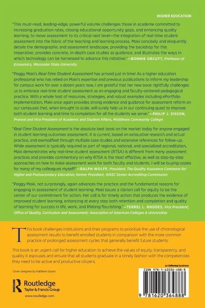 This book challenges institutions and their programs to prioritize the use of chronological assessment results to benefit enrolled students in comparison with the more common practice of prolonged assessment cycles that generally benefit future students.