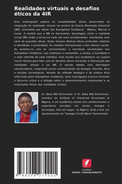 Esta investigação explora as complexidades éticas decorrentes da integração de realidades virtuais no cenário da Quarta Revolução Industrial (4RI), iluminadas por ideias dos Evangelhos Sinópticos - Mateus, Marcos e Lucas. À medida que a 4RI se desenvolve, tecnologias como a realidade virtual (RV) estão a tornar-se cada vez mais prevalecentes, levantando uma série de questões éticas. Estas incluem dilemas éticos profundos relativos à identidade, à privacidade, às relações interpessoais e aos valores sociais. Ao envolver-se com os ensinamentos e narrativas encontrados nos Evangelhos Sinópticos, que enfatizam a compaixão, a justiça, a humildade e o valor inerente de cada indivíduo, este estudo visa estabelecer um quadro moral robusto para lidar com os desafios éticos inerentes à intersecção das realidades virtuais e da 4IR. O estudo adopta uma abordagem interdisciplinar, integrando assim conhecimentos de teologia, filosofia, ética e estudos tecnológicos. Através da reflexão teológica e da análise ética informada pelos Evangelhos Sinópticos, esta investigação procura fomentar o discurso crítico e o diálogo sobre o desenvolvimento responsável e as implicações éticas das realidades virtuais.