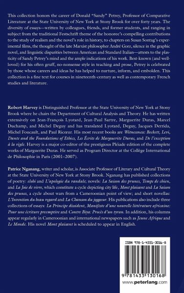 This collection honors the career of Donald "Sandy" Petrey, Professor of Comparative Literature at the State University of New York at Stony Brook for over forty years. The diversity of essays - written by colleagues, friends, and former students, and ranging in subject from the traditional Festschrift theme of the honoree's compelling contributions to the study of realism and the novel's role in history, to chapters on Susan Sontag's experimental films, the thought of the late Marxist philosopher André Gorz, silence in the graphic novel, and linguistic disparities between American and Standard Italian - attests to the plasticity of Sandy Petrey's mind and the ample indications of his work. Best-known (and well-loved) for his often gruff, no-nonsense style in teaching and prose, Petrey is celebrated by those whose careers and ideas he has helped to nurture, inform, and embolden. This collection is a fine text for courses in nineteenth-century as well as contemporary French studies and literature.