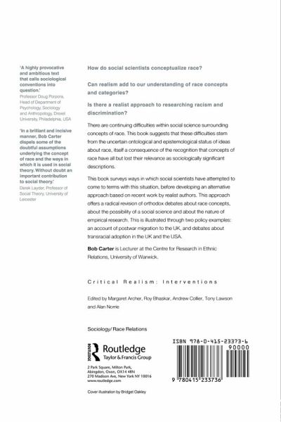 There are continuing difficulties within social science surrounding concepts of race. This book suggests that these difficulties stem from the uncertain ontological and epistemological status of ideas about race, itself a consequence of the recognition that concepts of race have all but lost their relevance as sociologically significant descriptions. This book surveys ways in which social scientists have attempted to come to terms with this situation, before developing an alternative approach based on recent work by realist authors. This approach offers a radical revision of orthodox debates about race concepts, about the possibility of a social science and about the nature of empirical research. This illustrated through two policy examples: an account of post war migration to the UK, and debates about trans-racial adoption in the UK and the USA.