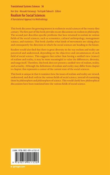This book discusses the growing interest in realism in social sciences of the twenty-first century. The first part of this book provides recent discussions on realism in philosophy. The second part describes specific problems that have returned to realism in various fields of the social sciences, such as economics, cultural anthropology, management science, and statistics. This book clarifies what kinds of movements are taking place and consequently the direction in which the social sciences are heading in the future.