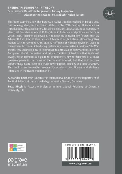 This book examines how IR's European realist tradition evolved in Europe and, due to emigration, in the United States in the 20th century. It includes an introduction and eight chapters, focusing on historical classical and contemporary structural branches of realist IR theorizing in historical and political contexts in which realist thinking did develop. It reminds us of realist key figures, such as Edward H. Carr, John H. Herz or Hans J. Morgenthau, but also of almost forgotten realists such as Raymond Aron, Stanley Hoffmann or Nicholas J. Spykman. Given IR mainstream textbooks introducing realism as a conservative American Cold War theory, this selection aims to reintroduce realism as a primarily and distinctively European, liberal, normative and critical tradition. A tradition that is almost always misunderstood as a guide for practitioners how to maximize or at least preserve power in the name of the national interest no matter the cost, but thatis in fact an argument against reckless and crude power politics, ideology and totalitarianism. This book is an invaluable resource for scholars, practitioners and students interested in the realist tradition in IR.