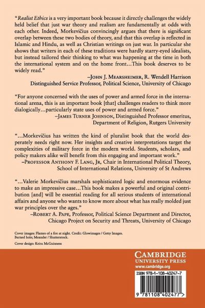 Just war thinking and realism are commonly presumed to be in opposition. If realists are seen as war-mongering pragmatists, just war thinkers are seen as naïve at best and pacifistic at worst. Just war thought is imagined as speaking truth to power - forcing realist decision-makers to abide by moral limits governing the ends and means of the use of force. Realist Ethics argues that this oversimplification is not only wrong, but dangerous. Casting just war thought to be the alternative to realism makes just war thinking out to be what it is not - and cannot be: a mechanism for avoiding war. A careful examination of the evolution of just war thinking in the Christian, Islamic, and Hindu traditions shows that it is no stranger to pragmatic politics. From its origins, just war thought has not aimed to curtail violence, but rather to shape the morally imaginable uses of force, deeming some of them necessary and even obligatory. Morkevi¿ius proposes here a radical recasting of the relationship between just war thinking and realism.