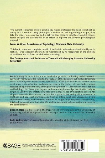 Chapter 1: Scientific Realism What is Realism? Naturalistic Realism Global and Local Realism Realist Methodology The Centrality of Method Realism in the Social Sciences Chapter 2: Evidence Social Science Preliminaries Empirical Evidence and Theory Coherentism and Naturalism Varieties of Evidence: Pragmatic Considerations Chapter 3: Validity Test Validity, Operational Definition, and Logical Empiricism Holism, Realism, and Ontological Commitment Construct Validity and Logical Empiricism Construct Validity, Generalization in Experiments, and Epistemology Paradigms of Validity Coherence Justification Chapter 4: Grounded Theory The Abductive Theory of Method Problem Formulation Phenomena Detection Theory Construction ATOM as Grounded Theory Method Chapter 5: Factor Analysis Exploratory Factor Analysis and Scientific Inference Methodological Challenges to Exploratory Factor Analysis Exploratory Factor Analysis and Other Factor Analytic Methods Chapter 6: Case Study Constitutive and Regulative Rules What is A Case? Generalizing From Cases A Case Study in China Making Generalizations Improving Knowledge of Generalizations