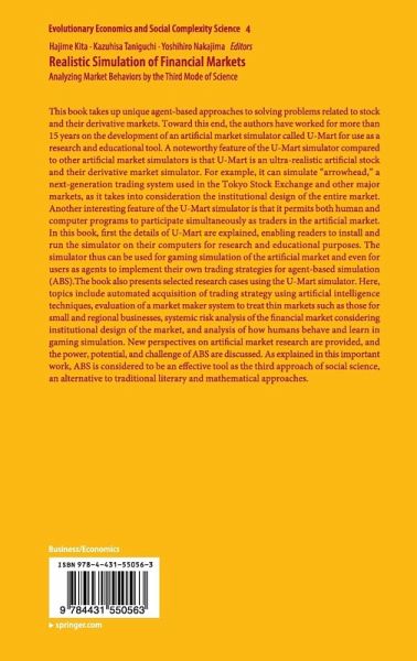 This book takes up unique agent-based approaches to solving problems related to stock and their derivative markets. Toward this end, the authors have worked for more than 15 years on the development of an artificial market simulator called U-Mart for use as a research and educational tool. A noteworthy feature of the U-Mart simulator compared to other artificial market simulators is that U-Mart is an ultra-realistic artificial stock and their derivative market simulator. For example, it can simulate "arrowhead," a next-generation trading system used in the Tokyo Stock Exchange and other major markets, as it takes into consideration the institutional design of the entire market. Another interesting feature of the U-Mart simulator is that it permits both human and computer programs to participate simultaneously as traders in the artificial market. In this book, first the details of U-Mart are explained, enabling readers to install and run the simulator on their computers for research andeducational purposes. The simulator thus can be used for gaming simulation of the artificial market and even for users as agents to implement their own trading strategies for agent-based simulation (ABS).The book also presents selected research cases using the U-Mart simulator. Here, topics include automated acquisition of trading strategy using artificial intelligence techniques, evaluation of a market maker system to treat thin markets such as those for small and regional businesses, systemic risk analysis of the financial market considering institutional design of the market, and analysis of how humans behave and learn in gaming simulation. New perspectives on artificial market research are provided, and the power, potential, and challenge of ABS are discussed. As explained in this important work, ABS is considered to be an effective tool as the third approach of social science, an alternative to traditional literary and mathematical approaches.