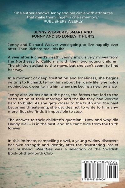 "The book is by turns humorous, witty, moving, upbeat. Jenny is a warm, sensitive heroine. It's a pleasure to watch her and a privilege to eavesdrop on her thoughts. Highly recommended..." LIBRARY JOURNAL Jenny Weaver is smart and funny and so lonely it hurts. Jenny and Richard Weaver were going to live happily ever after. Then Richard took his life. A year after Richard's death, Jenny impulsively moves from the Northeast to California with their two young children. The children adjust to the move, but she can't seem to find her way. And the children keep asking, "How-and-why did Daddy die?" She doesn't know what to say to them. In a moment of deep frustration and loneliness, she begins writing to Richard, telling him about her daily life. She holds nothing back, even telling him when she begins a new romance. Jenny also writes about the past. She vividly recalls their marriage and family life, and begins to see how it went wrong. As she gets closer to the truth and the past becomes threatening, she decides not to write to him anymore. But she finds it impossible to stop. The answer to their children's questions is in the past. Can she find a path to healing? In this intimate, compelling novel, a young widow discovers her own strength and identity after the devastating loss of her husband. Realities was a selection of the Swedish Book-of-the-Month Club.