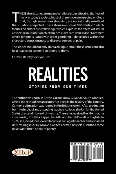 These short stories are meant to reflect issues affecting the lives of many in today’s society. Most of them have unexpected endings that, though sometimes shocking, are occasionally results of the situations depicted. These stories—such as "Retribution," which focuses on elder abuse; "Revenge," which explores the effects of sexual abuse; "Resolution," which examines elder care issues; and "Dreamer," which pinpoints issues with elder gambling—delve deep within the characters’ consciousness to discover sources of pain. The stories should not only start a dialogue about these issues but also help readers to examine solutions to them. Carmen Barclay Subryan, PhD