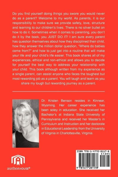 Do you find yourself doing things you swore you would never do as a parent? Welcome to my world. As parents it is our responsibility to make sure we provide safety, love, structure and learning to our children's lives. There is no silver bullet on how you do it. Sometimes when it comes to parenting, you don't do it by the book, you JUST DO IT! I am sure every parent has questioned themself on how they disciplined their child, how they answer the million dollar question, "Where do babies come from?" and how to just get into a routine that will make your life and your child's life easier. This book will share all of my experiences, ethical and non-ethical and allow you to decide for yourself the best way to address, your relationship with your child. This book although written from my experience as a single parent, can assist anyone who faces the toughest but most rewarding job as a parent. This book will make you laugh and learn.