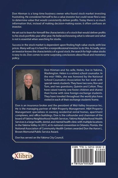 Don Hinman is a long-time business owner who found stock market investing frustrating. He considered himself to be a value investor but could never find a way to determine value that would consistently deliver profits. Today there is so much information that, instead of making decision-making easier, it often confuses an investor. He set out to learn for himself the characteristics of a stock that would deliver profits to his stock portfolio year after year. He believed knowing what is relevant and what is not is essential when searching for stocks. Success in the stock market is dependent upon finding high-value stocks with low prices. Many will say it is hard for a nonprofessional investor to do this. Actually, once an investor knows the characteristics of a good stock, the search for high-value stocks is easy to do. Don comes to some surprising conclusions about fiscal and monetary policy.