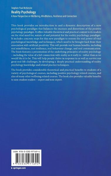 This book provides an introduction to and a dynamic description of a new psychological paradigm that balances the excesses and distortions of the positive psychology paradigm. It offers valuable theoretical and practical content to its readers on the vital need for, nature of and potential for the reality psychology paradigm. It includes concrete steps for this new paradigm to restore the real power of vital psychological knowledge and techniques, which need to be brought back from their association with artificial positivity. This will provide real human benefits, including real mindfulness, real resilience, real behaviour change, and real communication. The book features a presentation of the underlying principles of reality psychology - including the value of a full connection with reality as it really is - rather than as we would like it to be. This will help people thrive in response to as well as survive our great real-life challenges, by developing a deeply practical understanding of reality psychology knowledge and related practice techniques.