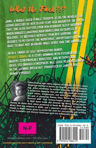 Jamie, a middle-aged female trucker, is on the mend after losing custody of her seven-year-old daughter. On top of that, she also suffers from REM Behavior Sleep Disorder which induces lingering nightmares and outbursts of violence. To distract herself from her sorrows, she decides to re-enter the workforce. Unfortunately, she'll have to make her deadline while space and time unravel. With a twinge of self-deprecating humor, REALITY SQUALL is a story brimming with psychedelic imagery, otherworldly monsters, and metaphysical ideas. Its ominous atmosphere will leave readers coiled by the looming dread but transfixed by Jamie's very human struggle.