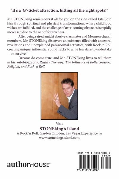Mr. STONEking remembers it all for you on the ride called Life. Join him through spiritual and physical transformations, where childhood wishes are fulfilled, and the challenge of over-coming obstacles is rapidly increased due to the act of forgiveness. After being raised amidst abusive classmates and Mormon church members, Mr. STONEking discovers an existence filled with ancestral revelations and unexplained paranormal activities, with Rock 'n Roll creating unique, influential soundtracks to a life few dare to undertake -- or survive! Dreams do come true, and Mr. STONEking lives to tell them in his autobiography, Reality Therapy: The Influence of Rollercoasters, Religion, and Rock 'n Roll.