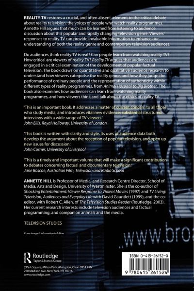 From Animal Hospital to Big Brother, Annette Hill argues that much can be learned from listening to audience discussion about this popular and rapidly changing television genre. Viewers' responses to reality TV can provide invaluable information to enhance our understanding of both the reality genre and contemporary television audiences.