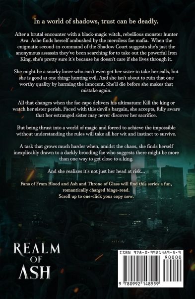 I have one rule as a monster hunter: Fight like I'm already dead. The moment I took out the black-magic witch, I knew I was in trouble. I'd blazed my way to her lair just to prove to my ex that the younger, perkier version he'd replaced me with was not equal to the Ava he'd callously tossed aside. So, by the time the light went out of the witch's eyes, I already knew the fight wasn't over. I just didn't realize it was the dark fae and the second in command of their Shadow Court who had ambushed me. He's hot AF. Ruthless. Powerful. The kind of bad boy that might make my spine tingle in all the right ways if he wasn't dragging me kicking and snarling into a land of magic with an ultimatum to kill a powerful fae king or watch my sister die. Why he wants a mortal as an assassin is beyond me, but I do know one thing. Like my ex, he's about to discover that Ava Ashe doesn't take orders well. And when she sees a monster, she kills it. Even if that monster makes my heart race in ways it shouldn't... Realm of Ash is the series starter for The Iron King's Assassin, a read in order, fast-paced and action filled fae romantasy with a slow burn enemies to lovers romance by urban fantasy author, Thea Atkinson.