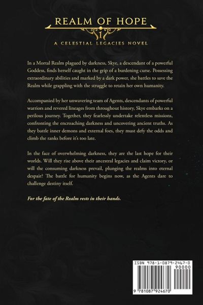 Darkness is rising... Gripping and action-filled, Realm of Hope is an epic science-fantasy tale with magic, supernatural powers, and a large and diverse cast, perfect for fans of Percy Jackson & The Olympians, Avatar: The Last Airbender, and the Marvel Cinematic Universe. For the first time in several millennia, nations set aside their differences. Only an interplanetary level threat could simmer down any tensions between leaders. Peace has never been eternal. Throughout the Mortal Realm, powerful bloodlines, clans, and royal families stepped up to save their worlds from the brink of destruction. Past heroes had plenty of living descendants with exclusive powers. Annually, mortals aged five to six take an examination to determine if they'd possess inherent capabilities, such as heat immunity or the ability to travel at the speed of light, which would grant them the privilege of becoming trained Agents. Lumière Inc. placed those with potential into teams, training them for more than a decade. Agents were symbols of hope. Decades passed, however, and cynicism rose. Morale needed a boost. Dream Teams formed. With bloodshed and shattered dreams recorded throughout history, they can only hope their fates won't face inevitable doom. In the pursuit of tracking down the root cause of the rising everlasting darkness, our heroes must not lose sight of themselves. Realm of Hope is the first book in the thrilling science-fantasy trilogy and sets up the Celestial Legacies Universe. E.L.Li's debut novel depicts modern themes of dealing with loss, harsh realities, self-doubt, acceptance, rising up to pressure, and expecting the unexpected. Expect brutality, danger, and revelations in the fight for a cause that may be lost. Content Warning: Graphic violence, death, suicide, depictions of PTSD & gore.