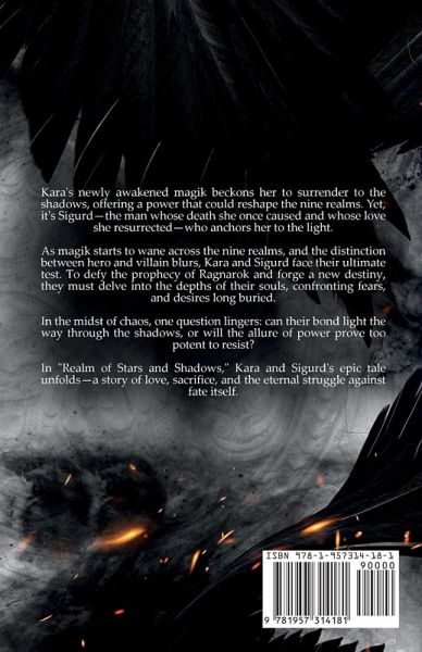 Kara's newly awakened magik beckons her to surrender to the shadows, offering a power that could reshape the nine realms. Yet, it's Sigurd-the man whose death she once caused and whose love she resurrected-who anchors her to the light. As magik starts to wane across the nine realms, and the distinction between hero and villain blurs, Kara and Sigurd face their ultimate test. To defy the prophecy of Ragnarok and forge a new destiny, they must delve into the depths of their souls, confronting fears, and desires long buried. In the midst of chaos, one question lingers: can their bond light the way through the shadows, or will the allure of power prove too potent to resist? In "Realm of Stars and Shadows," Kara and Sigurd's epic tale unfolds-a story of love, sacrifice, and the eternal struggle against fate itself.