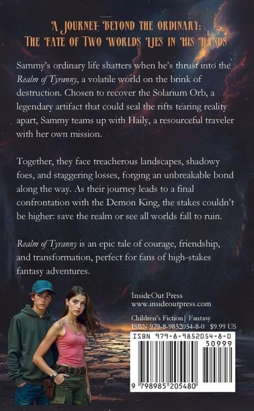 Sammy's ordinary life shatters when he's thrust into the Realm of Tyranny, a volatile world on the brink of destruction. Chosen to recover the Solarium Orb, a legendary artifact that could seal the rifts tearing reality apart, Sammy teams up with Haily, a resourceful traveler with her own mission. Together, they face treacherous landscapes, shadowy foes, and staggering losses, forging an unbreakable bond along the way. As their journey leads to a final confrontation with the Demon King, the stakes couldn't be higher: save the realm or see all worlds fall to ruin. Realm of Tyranny is an epic tale of courage, friendship, and transformation, perfect for fans of high-stakes fantasy adventures.