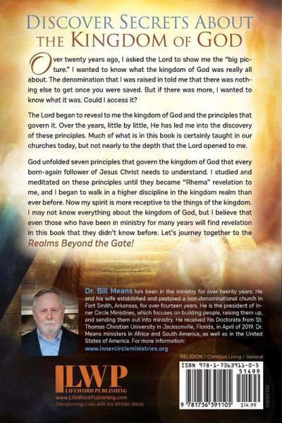Discover Secrets about the Kingdom of God Over twenty years ago, I asked the Lord to show me the "big picture." I wanted to know what the kingdom of God was really all about. The denomination that I was raised in told me that there was nothing else to get once you were saved. But if there was more, I wanted to know what it was. Could I access it? The Lord began to reveal to me the kingdom of God and the principles that govern it. Over the years, little by little, He has led me into the discovery of these principles. Much of what is in this book is certainly taught in our churches today, but not nearly to the depth that the Lord opened to me. God unfolded seven principles that govern the kingdom of God that every born-again follower of Jesus Christ needs to understand. I studied and meditated on these principles until they became "Rhema" revelation to me, and I began to walk in a higher discipline in the kingdom realm than ever before. Now my spirit is more receptive to the things of the kingdom. I may not know everything about the kingdom of God, but I believe that even those who have been in ministry for many years will find revelation in this book that they didn't know before. Let's journey together to the Realms beyond the Gate!
