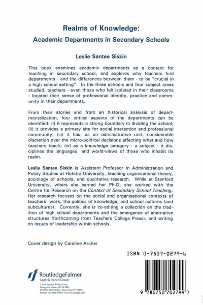 This study examines academic departments as a context for teaching in the secondary school. lt explores why teachers find departments to be crucial to the high school setting. In all three schools studied and in all four subjects English, Maths, Science and Social Science teachers - even those who felt isolated in their classrooms - located their sense of professional identity, practice and community in their departments. Departments are seen as boundaries for dividing the school; centres of social interaction; a micro political decision-making forum; as a subject knowledge category. Those concerns are important at this time as various attacks are being made on school structures and subject and administration fragmentation - in these cases subjects are seen as obstacles to change. To subject groups they are viewed as potential vehicles to carry and confirm the message.