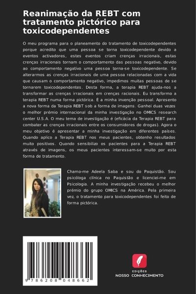 O meu programa para o planeamento do tratamento de toxicodependentes porque acredito que uma pessoa se torna toxicodependente devido a eventos activadores, estes eventos criam crenças irracionais, estas crenças irracionais tornam o comportamento das pessoas negativo, devido ao comportamento negativo uma pessoa torna-se toxicodependente. Se alterarmos as crenças irracionais de uma pessoa relacionadas com a vida que causam o comportamento negativo, impedimos muitas pessoas de se tornarem toxicodependentes. Desta forma, a terapia REBT ajuda-nos a transformar as crenças irracionais em crenças racionais. Eu transformo a terapia REBT numa forma pictórica. É a minha invenção pessoal. Apresento a nova forma da Terapia REBT sob a forma de imagens. Ganhei duas vezes o melhor prémio internacional da minha investigação no OMICS research center U.S.A. O meu tema de investigação é (eficácia da Terapia REBT para combater as crenças irracionais entre os consumidores de drogas). Agora o meu objetivo é apresentar a minha investigação em diferentes países. Quando aplico a Terapia REBT nos meus pacientes, obtenho resultados muito positivos. Quando sensibilizo os pacientes para a Terapia REBT através de imagens, os meus pacientes interessam-se muito por esta forma de tratamento.