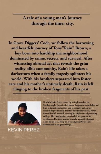 Grave Diggers' Code: A Haunting Tale of Family, Secrets, and Redemption Tony "Rain" Brown was born into a struggle, crime, and buried truths. After witnessing a brutal act that unveils the dark underbelly of his community, Rain's life spirals further into tragedy when a family crisis tears him away from everything he's known. With his brothers placed in foster care and the devastating loss of his mother, Rain is left clinging to shattered memories. Adopted by the nurturing Dunning family, Rain is offered a second chance-private school, warm meals, and the stability of a loving home. But beneath the surface of this fresh start lies a hidden truth: the Grave Diggers' Code, a mysterious and dangerous legacy tied to his bloodline. Haunted by the pull of his past, Rain navigates the tension between his new life and the weight of secrets his family buried long ago. When a schoolyard clash forces him to confront his identity and a family museum visit reveals chilling details about his father, Rain is thrust into a battle for his future. Will he break free from the chains of his past, or will the sinister legacy of the Grave Diggers' Code reclaim him? For fans of gripping coming-of-age stories and suspenseful family dramas, Grave Diggers' Code is a heart-wrenching journey of resilience, identity, and the fight to forge your own path.