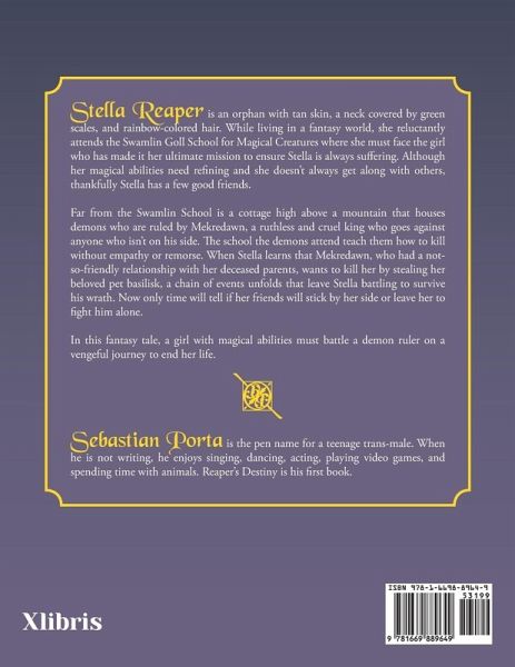 Stella Reaper is an orphan with tan skin, a neck covered by green scales, and rainbow-colored hair. While living in a fantasy world, she reluctantly attends the Swamlin Goll School for Magical Creatures where she must face the girl who has made it her ultimate mission to ensure Stella is always suffering. Although her magical abilities need refining and she doesn't always get along with others, thankfully Stella has a few good friends. Far from the Swamlin School is a cottage high above a mountain that houses demons who are ruled by Mekredawn, a ruthless and cruel king who goes against anyone…mehr