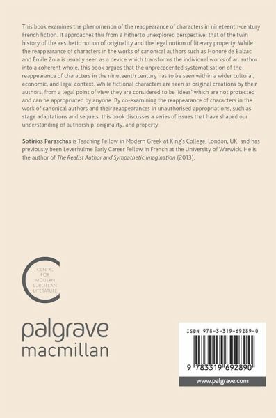 This book examines the phenomenon of the reappearance of characters in nineteenth-century French fiction. It approaches this from a hitherto unexplored perspective: that of the twin history of the aesthetic notion of originality and the legal notion of literary property. While the reappearance of characters in the works of canonical authors such as Honoré de Balzac and Émile Zola is usually seen as a device which transforms the individual works of an author into a coherent whole, this book argues that the unprecedented systematisation of the reappearance of characters in the nineteenth century has to be seen within a wider cultural, economic, and legal context. While fictional characters are seen as original creations by their authors, from a legal point of view they are considered to be 'ideas' which are not protected and can be appropriated by anyone. By co-examining the reappearance of characters in the work of canonical authors and their reappearances in unauthorised appropriations, such as stage adaptations and sequels, this book discusses a series of issues that have shaped our understanding of authorship, originality, and property.