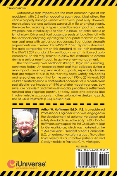 Automotive rear impacts are the most common type of car accident, with 2.5 million occuring each year. Most often, the vehicle property damage is minor with no occupant injury. However, more serious rear-end collisions can result in life-changing events. There are two major injury types caused by rear impact accidents. Whiplash (non-lethal injury) and Seat-Collapse (potential serious or lethal injury). Driver and front passenger seats all too often fail, with the seatback collapsing, ejecting the occupants rearward into the rear seat area with serious consequences. Seat design strength requiements are covered by FMVSS 207 Seat Systems Standard. The auto companies rely on this standard to test their seatsdard. The FMVSS 207 standard for seatback strength is flawed auto compaies use this requirement to allow the seatback to deform during a serious rear-impact, to achive enery-management. The controversy over seatback strength, Rigid verus Yielding, continues today. An occupied front seat that collapses during a rear-impact can entrap rear seat occupants, especially children that are required to sit in the rear row seats. Safety advocates and researchers report that for the period 1990 to 2014 nearly 900 children seated behind a front-seated occupant or in a center rear seat died in rear impacts of 1990 and later model-year cars. Law suites are prevalent and multi-million dollar penalties or settlements resulted and litigation continue today. Rear-end crashes also involve vehicle occupants in other automotive design hazards. Use of Child Restraints (CRS) is essentaial.