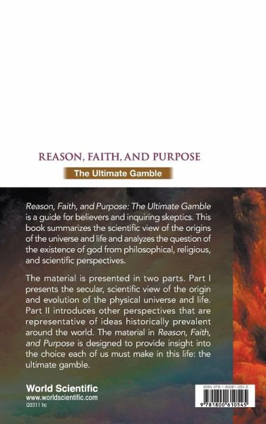 Reason, Faith, and Purpose: The Ultimate Gamble is a guide for believers and inquiring skeptics. This book summarizes the scientific view of the origins of the universe and life and analyzes the question of the existence of god from philosophical, religious, and scientific perspectives. The material is presented in two parts. Part I presents the secular, scientific view of the origin and evolution of the physical universe and life. Part II introduces other perspectives that are representative of ideas historically prevalent around the world. The material in Reason, Faith, and Purpose is designed to provide insight into the choice each of us must make in this life: the ultimate gamble.