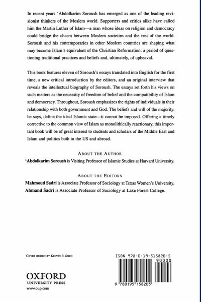 Abdolkarim Soroush has emerged as one of the leading moderate revisionist thinkers of the Muslim world. He and his contemporaries in other Muslim countries are shaping what may become Islam's equivalent of the Christian Reformation: a period of questioning traditional practices and beliefs and, ultimately, of upheaval. Presenting eleven of his essays, this volume makes Soroush's thought readily available in English for the first time. The essays set forth his views on such matters as the freedom of Muslims to interpret the Qur'an, the inevitability of change in religion, the necessity of freedom of belief, and the compatibility of Islam and democracy. Throughout, Soroush emphasizes the rights of individuals in their relationship with both government and God, explaining that the ideal Islamic state can only be defined by the beliefs and will of the majority.