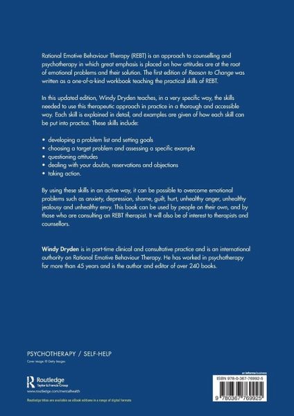 Rational Emotive Behaviour Therapy (REBT) is an approach to counselling and psychotherapy in which great emphasis is placed on how attitudes are at the root of emotional problems and their solution. The first edition of Reason to Change was written as a one-of-a-kind workbook teaching the practical skills of REBT.