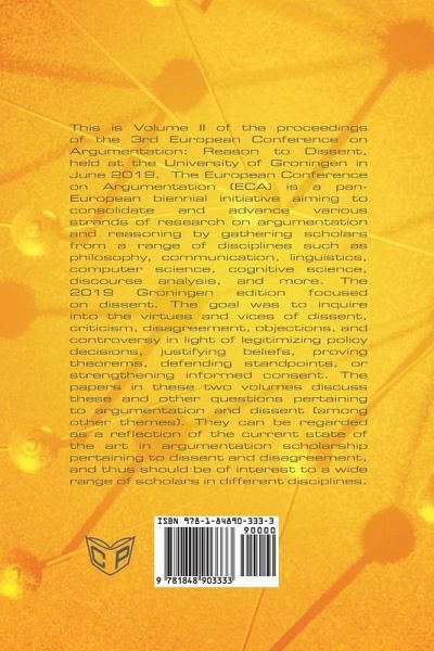 This is Volume III of the proceedings of the 3rd European Conference on Argumentation: Reason to Dissent, held at the University of Groningen in June 2019. The European Conference on Argumentation (ECA) is a pan-European biennial initiative aiming to consolidate and advance various strands of research on argumentation and reasoning by gathering scholars from a range of disciplines such as philosophy, communication, linguistics, computer science, cognitive science, discourse analysis, and more. The 2019 Groningen edition focused on dissent. The goal was to inquire into the virtues and vices of dissent, criticism, disagreement, objections, and controversy in light of legitimizing policy decisions, justifying beliefs, proving theorems, defending standpoints, or strengthening informed consent. The papers in these two volumes discuss these and other questions pertaining to argumentation and dissent (among other themes). They can be regarded as a reflection of the current state of the art in argumentation scholarship pertaining to dissent and disagreement, and thus should be of interest to a wide range of scholars in different disciplines.