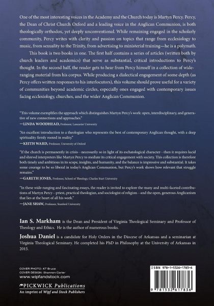 One of the most interesting voices in the Academy and the Church today is Martyn Percy. Percy, the Dean of Christ Church Oxford and a leading voice in the Anglican Communion, is both theologically orthodox, yet deeply unconventional. While remaining engaged in the scholarly community, Percy writes with clarity and passion on topics that range from ecclesiology to music, from sexuality to the Trinity, from advertising to ministerial training--he is a polymath. This book is two books in one. The first half contains a series of articles (written both by church leaders and academics) that serve as substantial, critical introductions to Percy's thought. In the second half, the reader gets to hear from Percy himself in a collection of wide-ranging material from his corpus. While producing a dialectical engagement of some depth (as Percy offers written responses to his interlocutors), this volume should prove useful for a variety of communities beyond academic circles, especially ones engaged with contemporary issues facing ecclesiology, churches, and the wider Anglican Communion. ""This volume exemplifies the approach which distinguishes Martyn Percy's work: open, interdisciplinary, and generative of new connections and approaches."" --Linda Woodhead, Professor, Lancaster University ""An excellent introduction to a theologian who represents the best of contemporary Anglican thought, with a deep spirituality firmly rooted in reality."" --Keith Ward, Professor, University of Oxford ""If the church is permanently in crisis--necessarily so in light of its eschatological character--then it requires lucid and shrewd interpreters like Martyn Percy to mediate its critical engagement with society. This collection is therefore both timely and ambitious in its scope, insights, and humanity, and the balance is impressive and substantial. It takes some courage to be so liberal in today's Anglican Communion, but Percy's work shows how relevant that struggle remains."" --Gareth Jones, Professor, School of Theology, Charles Sturt University ""In these wide-ranging and fascinating essays, the reader is invited to explore the many and multi-faceted contributions of Martyn Percy--priest, practical theologian, and sociologist of religion--and the open, generous Anglicanism that lies at the heart of all his work."" --Jane Shaw, Professor, Stanford University Ian S. Markham is the Dean and President of Virginia Theological Seminary and Professor of Theology and Ethics. He is the author of numerous books. Joshua Daniel is a candidate for Holy Orders in the Diocese of Arkansas and a seminarian at Virginia Theological Seminary. He completed his PhD on Wittgenstein and Religion at the University of Arkansas in 2015.
