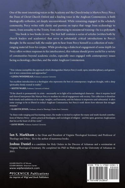 One of the most interesting voices in the Academy and the Church today is Martyn Percy. Percy, the Dean of Christ Church Oxford and a leading voice in the Anglican Communion, is both theologically orthodox, yet deeply unconventional. While remaining engaged in the scholarly community, Percy writes with clarity and passion on topics that range from ecclesiology to music, from sexuality to the Trinity, from advertising to ministerial training--he is a polymath. This book is two books in one. The first half contains a series of articles (written both by church leaders and academics) that serve as substantial, critical introductions to Percy's thought. In the second half, the reader gets to hear from Percy himself in a collection of wide-ranging material from his corpus. While producing a dialectical engagement of some depth (as Percy offers written responses to his interlocutors), this volume should prove useful for a variety of communities beyond academic circles, especially ones engaged with contemporary issues facing ecclesiology, churches, and the wider Anglican Communion.