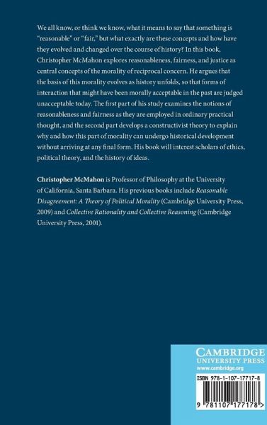 We all know, or think we know, what it means to say that something is 'reasonable' or 'fair', but what exactly are these concepts and how have they evolved and changed over the course of history? In this book, Christopher McMahon explores reasonableness, fairness, and justice as central concepts of the morality of reciprocal concern. He argues that the basis of this morality evolves as history unfolds, so that forms of interaction that might have been morally acceptable in the past are judged unacceptable today. The first part of his study examines the notions of reasonableness and fairness as they are employed in ordinary practical thought, and the second part develops a constructivist theory to explain why and how this part of morality can undergo historical development without arriving at any final form. His book will interest scholars of ethics, political theory, and the history of ideas.