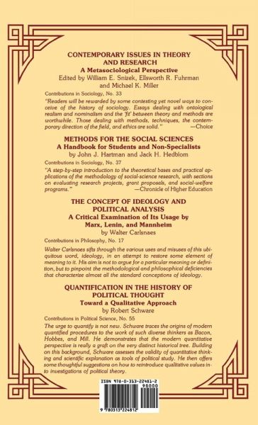 ?This work is ... a set of ideas to guide the thinking by which social science researchers conceptualize their work. ... The author concisely presents a theory of knowledge in order to develop the need for greater precision in description, classification, forecasts, theories, choice, and argument. ... The approach thoroughout is critical.... Each statement is clear, each idea is cogently argued, and one is led gently but relentlessly to perceive how research should be thought about before it begins. ... This book is a model of persuasive argument and good writing. ... It is to the author's credit that he discusses profound subjects in so few pages, Useful ideas for researchers, both beginnners and experienced alike, abound on every page.?-The Alabama Journal of Medical Sciences