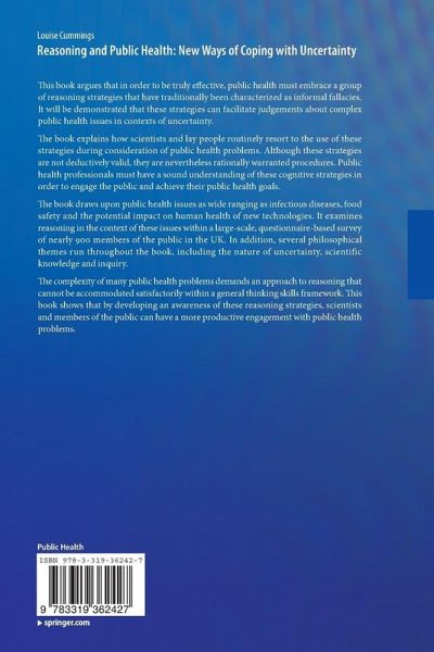 The complexity of many public health problems demands an approach to reasoning that cannot be accommodated satisfactorily within a general thinking skills framework. This book shows that by developing an awareness of these reasoning strategies, scientists and members of the public can have a more productive engagement with public health problems.