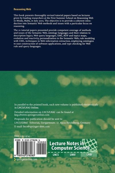 This book presents thoroughly revised tutorial papers based on lectures given by leading researchers at the First Summer School on Reasoning Web in Msida, Malta, in July 2005. The objective is to provide a coherent introduction into Semantic Web methods and issues with a particular focus on reasonning.