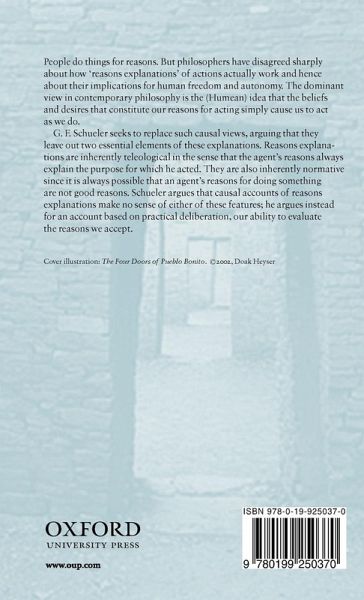 People act for reasons. That is how we understand ourselves. But what is it to act for a reason? This is what Fred Schueler investigates. He rejects the dominant view that the beliefs and desires that constitute our reasons for acting simply cause us to act as we do, and argues instead for a view centred on practical deliberation--our ability to evaluate the reasons we accept. Schueler's account of 'reasons explanations' emphasizes the relation between reasons and purposes, and the fact that the reasons for an action are not always good reasons.